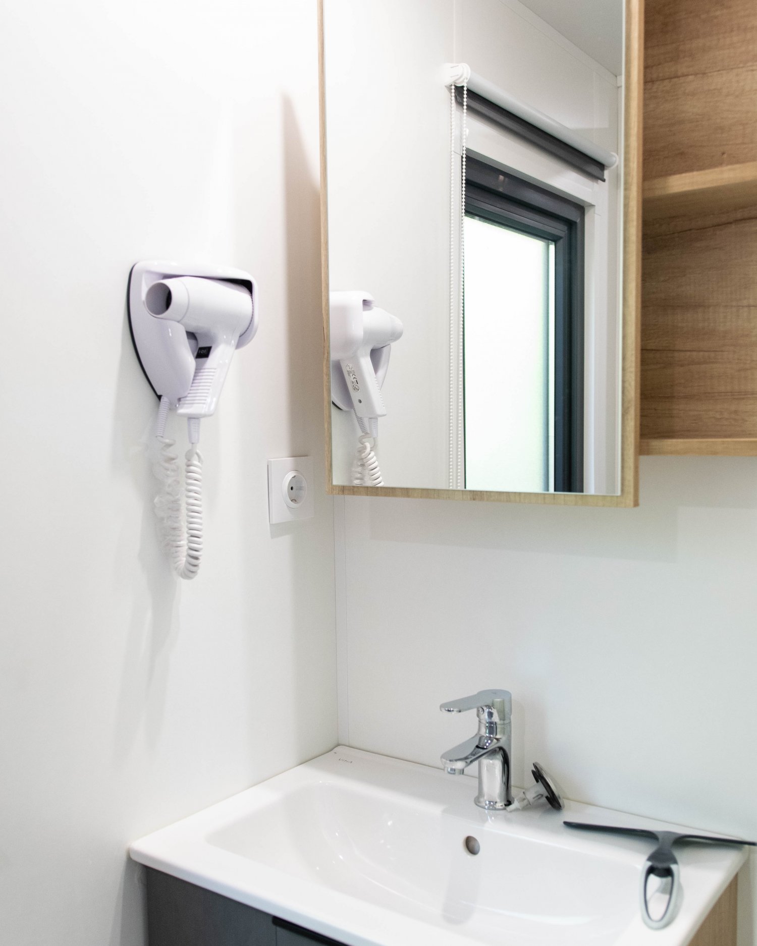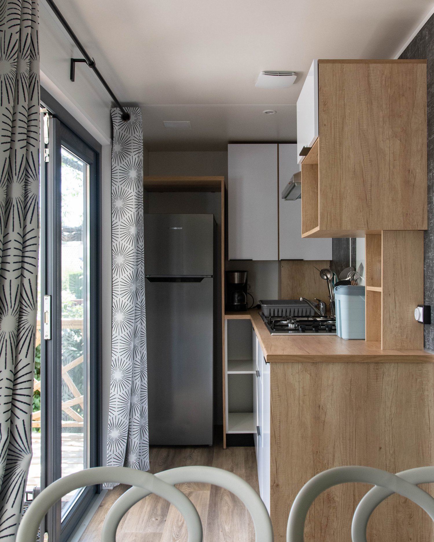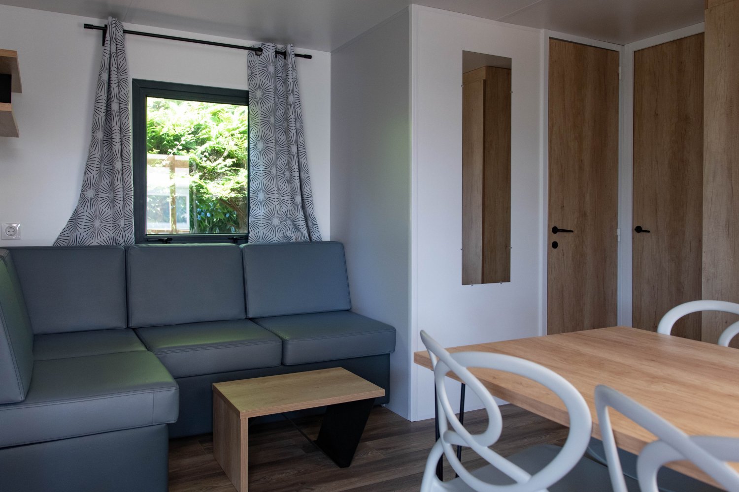 Wählen Sie den Komfort eines voll ausgestatteten Mobilheims mit trendiger Dekoration und hochwertigen Möbeln auf einem 100 / 150 m2 großen Grundstück im Grünen für einen erholsamen Urlaub mit der Familie oder mit Freunden. 700 Meter vom Strand und 500 Meter von den Geschäften entfernt. Ideal gelegen, um den Reichtum der Region zu entdecken und außergewöhnliche Sehenswürdigkeiten zu besichtigen.