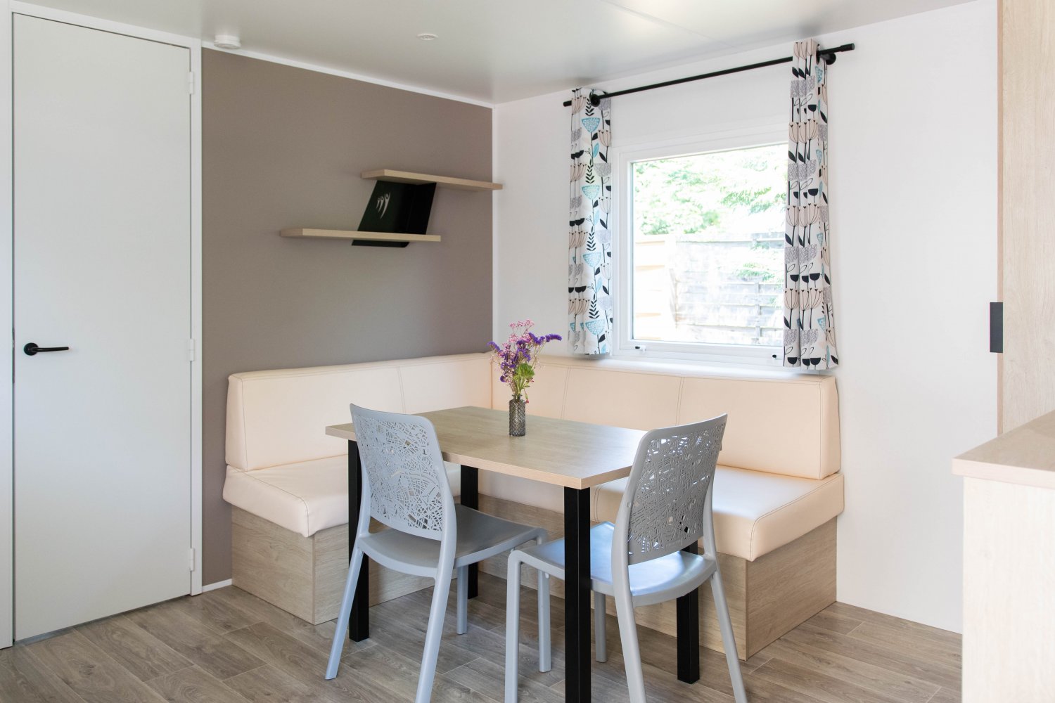 Choose the comfort of a fully equipped mobile home in a green environment for a relaxing holiday with family or friends. Only 700 meters from the beach and 500 meters from the amenities. Ideally located to discover the richness of the region and visit exceptional sites.